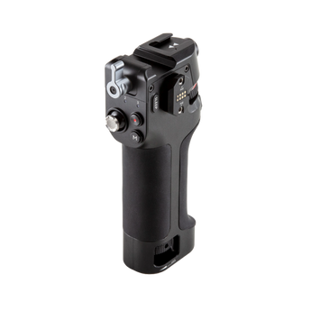 The DJI Ronin Tethered Control Handle offers extended wired control of camera focus and parameters, camera shutter, and gimbal movement when connected to the Control Cable. The handle has one RSA+NATO port and one cold shoe port for mounting Ronin and third-party accessories.